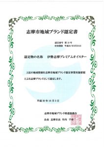 2018年10月26日伊勢志摩プレミアムオイスターが「志摩ブランド」に認定されました。(第19号認定商品)